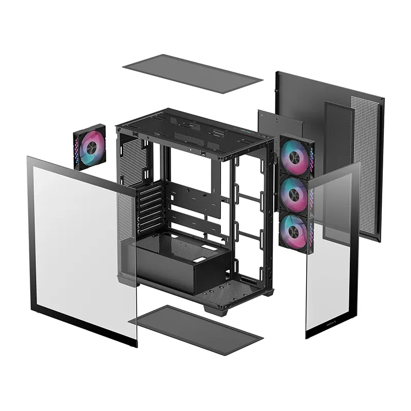 | Podrška za ventilatore | Prednja strana: N/A Gornja strana: 3 × 120 mm / 2 × 140 mm Bočna strana: 3 × 120 mm Zadnja strana: 1 × 120 mm / 1 × 140 mm Donja strana: 1 × 120 mm (izbor: 3.5″ HDD ili ventilator) Poklopac napajanja: 2 × 120 mm |