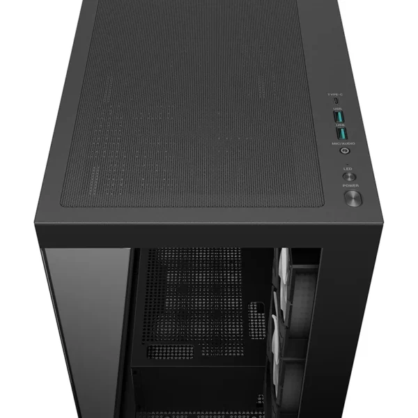 | Unapred instalirani ventilatori | Bočno: 3 × 120 mm (PWM + ARGB, obrnuti protok) Pozadi: 1 × 120 mm (PWM + ARGB) |