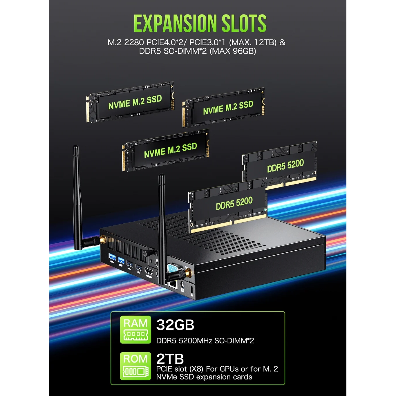 | Proširenje skladišta | M.2 2280 ×3, maksimalno do 12 TB (3×4 TB) |