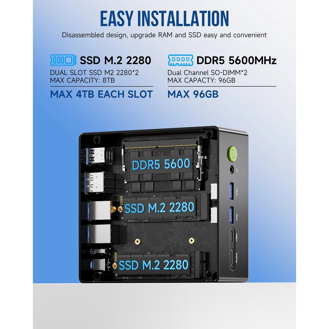Ultra-moćan mini PC zasnovan na AMD Ryzen™ 7 8845HS procesoru i Radeon™ 780M grafici – idealan za 3D rad, video produkciju, multimediju, NAS/Firewall i visokointenzivne zadatke u ultra-kompaktnom formatu.