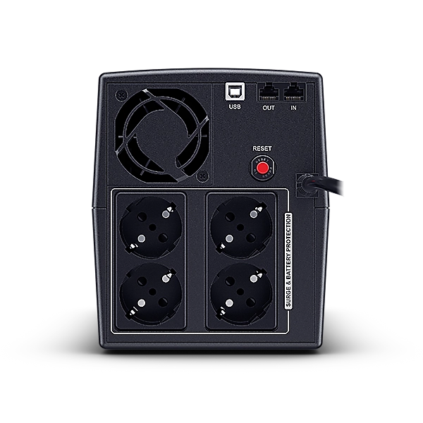 | Line-interactive UPS snage 1500VA / 900W sa AVR regulacijom napona i 4x Schuko utičnice (baterijska + prenaponska zaštita). Simulirani sinusni talas omogućava stabilan rad računara i kancelarijske opreme, uz brzo prebacivanje od 4 ms. Ugrađeni USB-A i USB-C portovi za punjenje, kao i RJ11/RJ45 zaštita za telefon/mrežu. Tipična autonomija do 90 min pri 60W, punjenje oko 8h, kućište u tower formatu, crne boje. Garancija 2 godine (uređaj i baterija). |